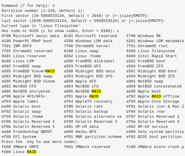 sudo mdadm --create --verbose /dev/mdx --level=0-6 --raid-devices=3 /dev/sdb1 /dev/sdc1 /dev/sdd1 /dev/sde1